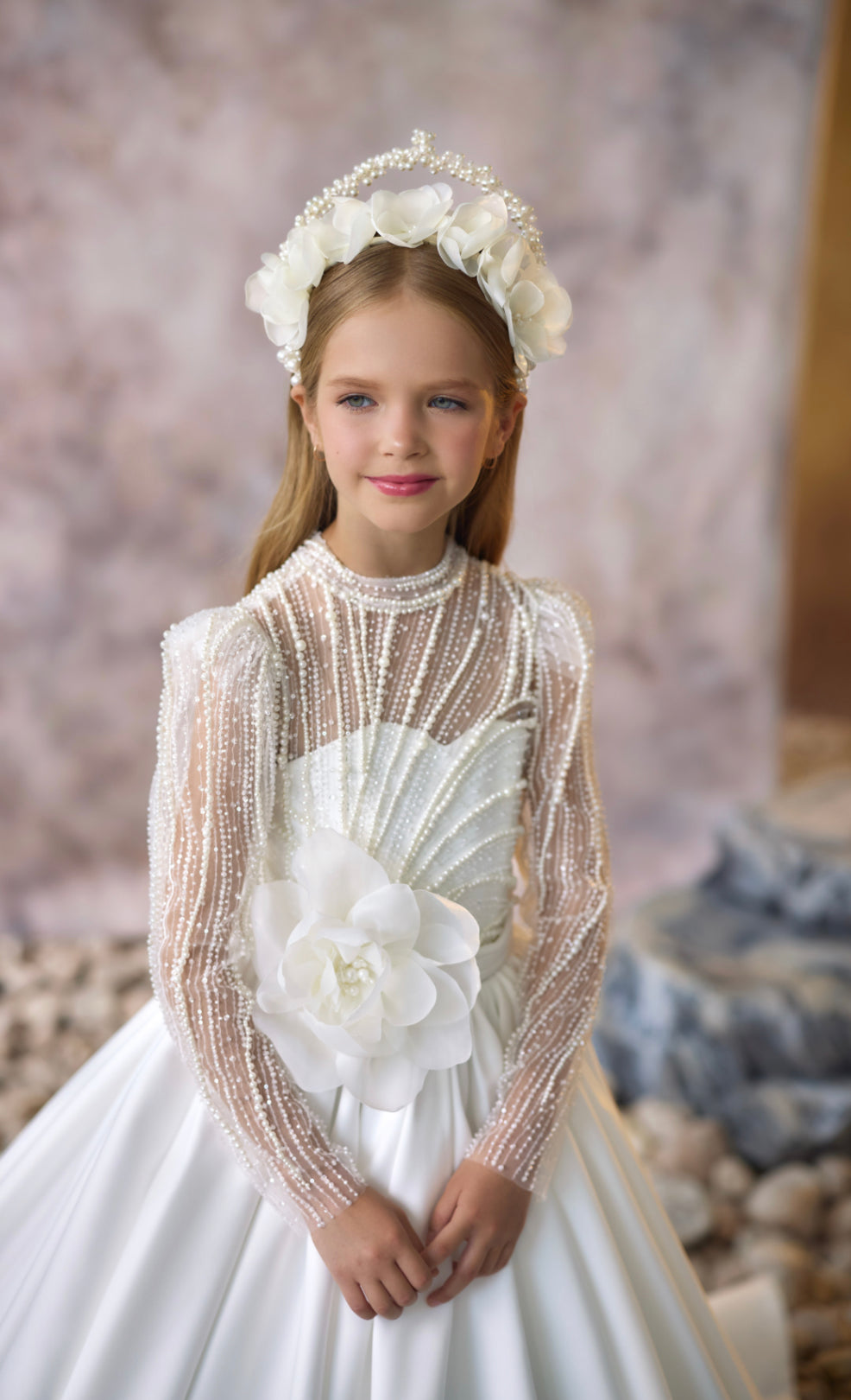 Perfect for weddings, communions, or any special celebration, this tiara pairs beautifully with a variety of gowns, offering an elevated, fairy-tale finish to your little one’s look.