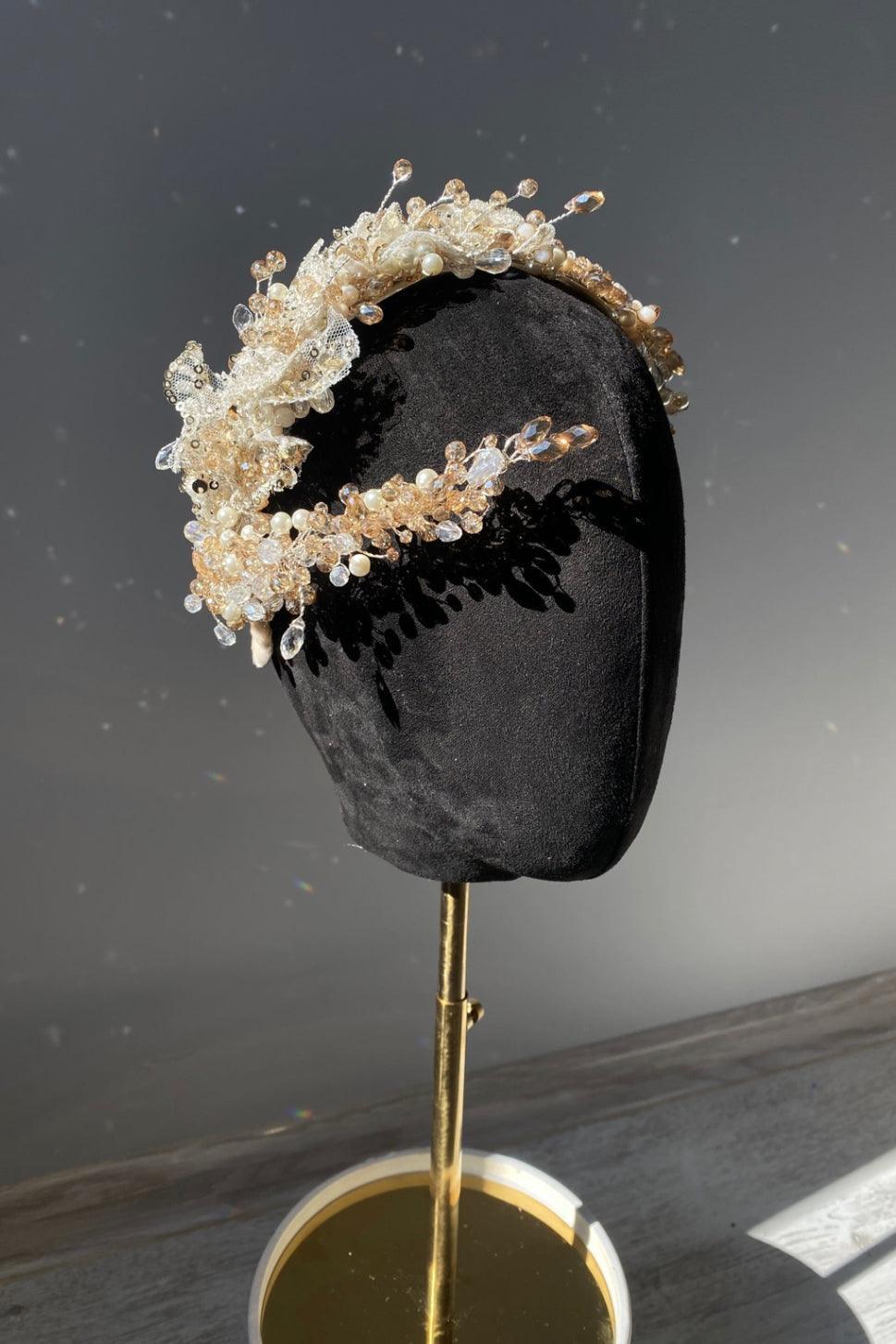 Step into the spotlight with the Golden Sunburst Crystal Tiara, an exquisite piece that embodies timeless beauty and elegance. This luxurious tiara is adorned with warm golden crystals and pearls, intricately arranged to form a radiant sunburst design. The subtle yet striking combination of champagne and ivory hues gives this tiara a sophisticated charm, perfect for adding a touch of glamour to any special occasion. With its flexible band and delicate design, it comfortably fits all head sizes, ensuring that every princess feels as magical as she looks. This tiara is a statement of grace and refinement, making it the ideal accessory for weddings, birthdays, or any celebration that calls for something truly special.