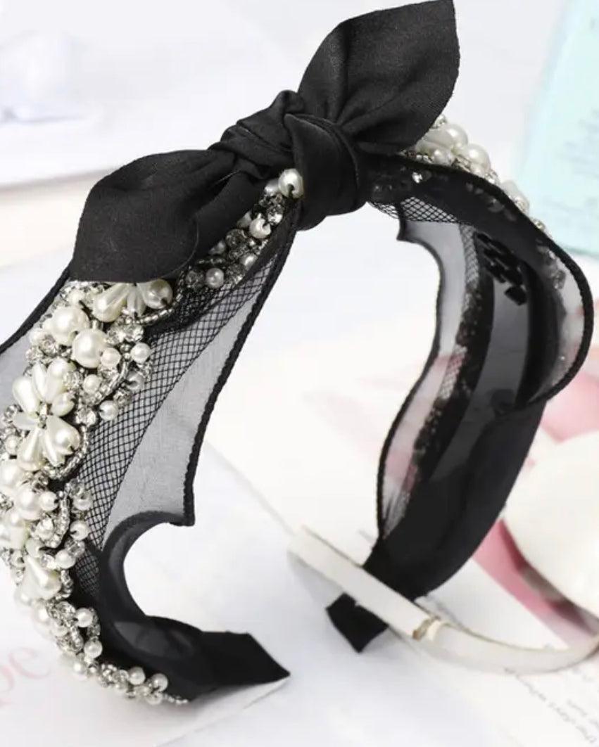 Elevate your style with our Sophisticated Pearl Bow Headband, the perfect accessory for any young fashionista. This exquisite piece features a luxurious black satin bow, delicately adorned with shimmering faux pearls and sparkling rhinestones. The intricate mesh detailing adds a touch of elegance, making this headband ideal for both formal occasions and adding a chic touch to everyday outfits. Whether attending a special event or simply wanting to stand out, this headband is the ultimate blend of sophistication and charm.