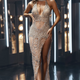 Style this gown with sleek diamond studs, a soft wavy blowout, and pointed satin heels for an ultra-polished evening look. Perfect for red-carpet galas, high-fashion editorials, or an unforgettable reception entrance where brilliance and sensuality meet.