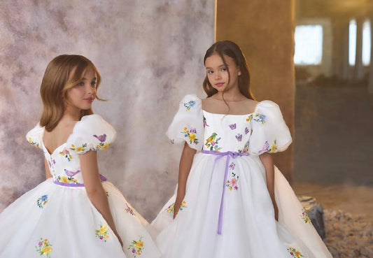 Exquisite Floral Puff Sleeve Dresses