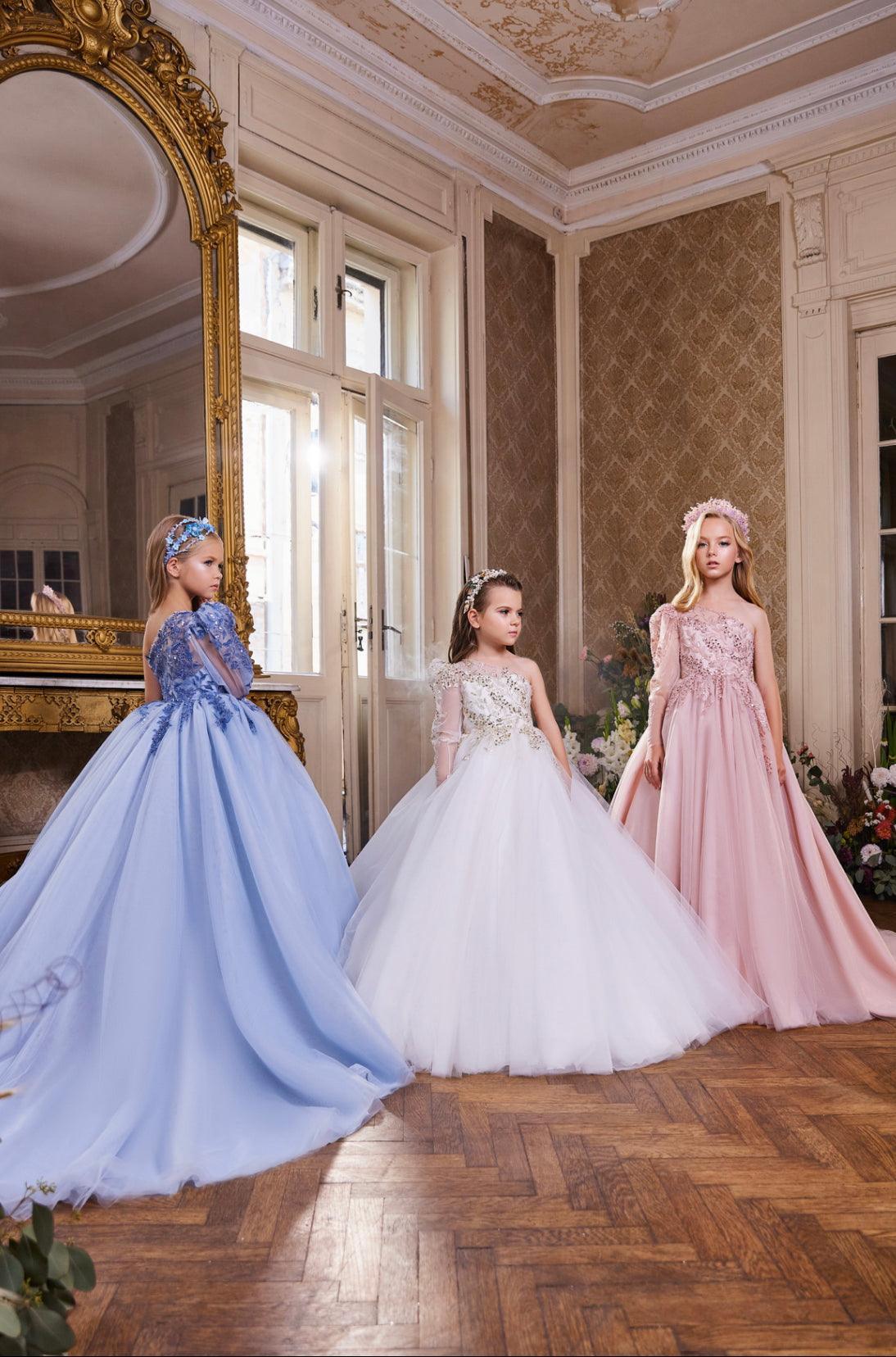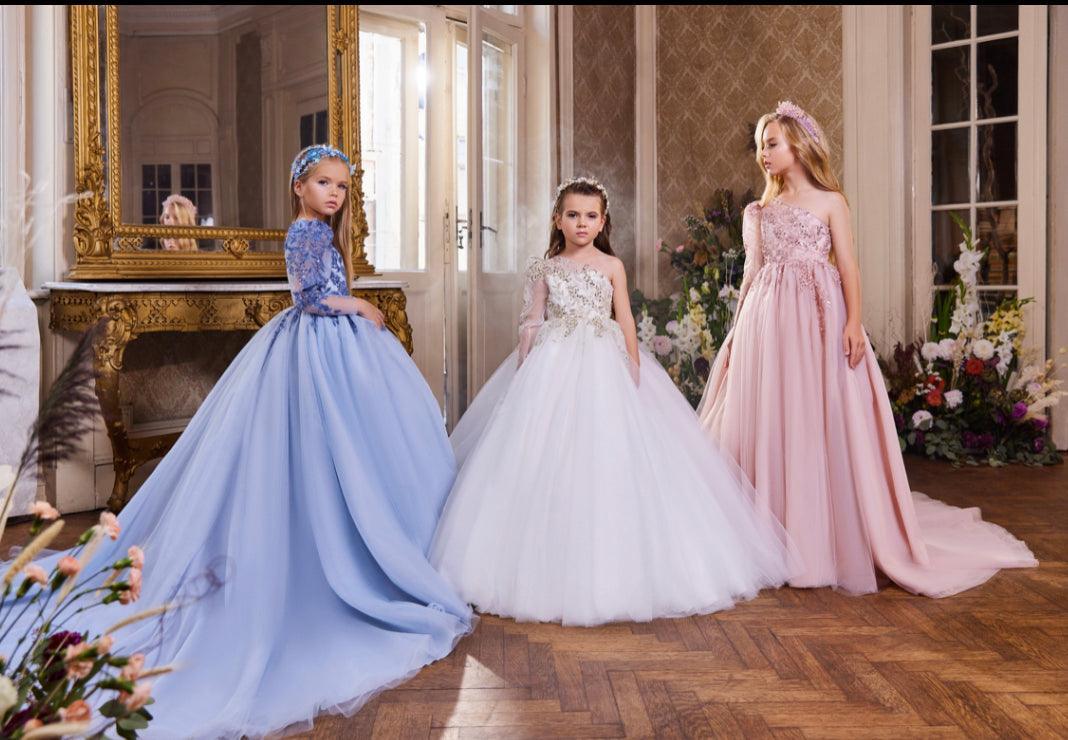 Step into a world of elegance and sophistication with the Royal Dreams Collection, featuring gowns that are perfect for your little one’s most special occasions. Each gown is meticulously crafted to exude timeless beauty and luxury, ensuring your princess shines in every setting.