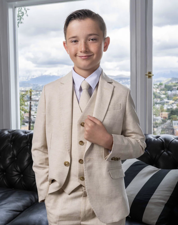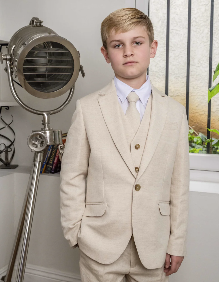 The Oasis Safari Sand Kids suit draws inspiration from the Sahara Desert and exudes both sophistication and vibrancy, making it the perfect choice for Ring-bearers, Weddings or any Formal Occasion.