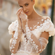 Voluminous puff sleeves and detachable sheer gloves add a touch of modern drama, while the gentle shimmer of the fabric captures the light with every step. A subtle sweep train completes the gown with poetic movement and understated grandeur.