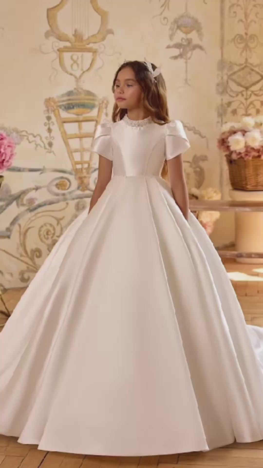 Style Inspiration: Pair this gown with a pearl-encrusted headband, soft curls, and dainty satin shoes for a look that radiates classic princess charm. Ideal for church ceremonies, flower girl duties, or any occasion worthy of royal attire.