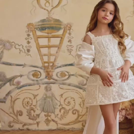 Paired with optional puffed sleeves, this gown gives your princess the freedom to shine in multiple styles throughout her special day. Whether she’s walking down the aisle as a flower girl, attending a grand celebration, or twirling at her birthday, the Valentina Gown guarantees unforgettable moments.