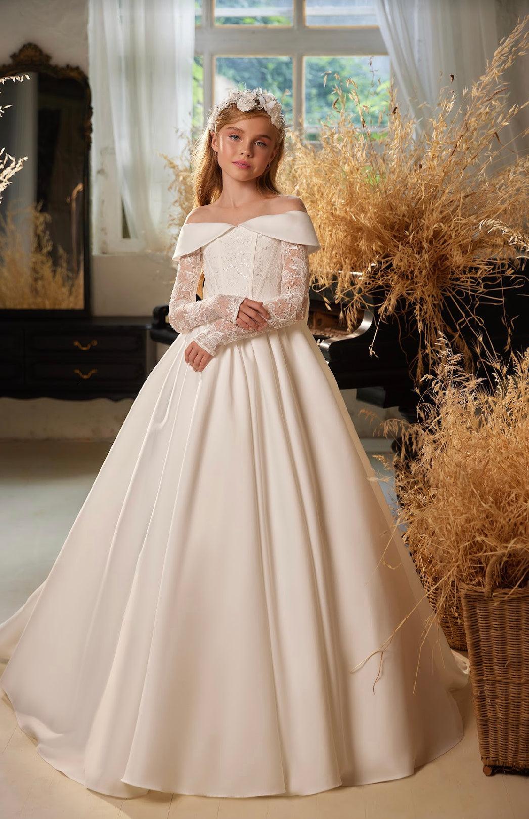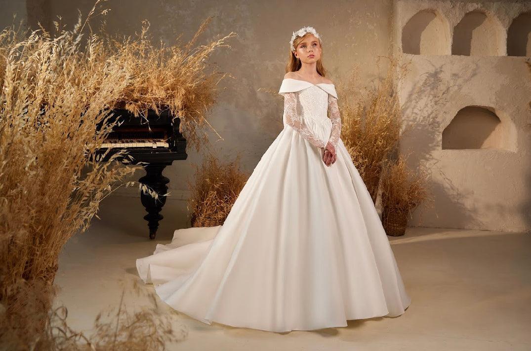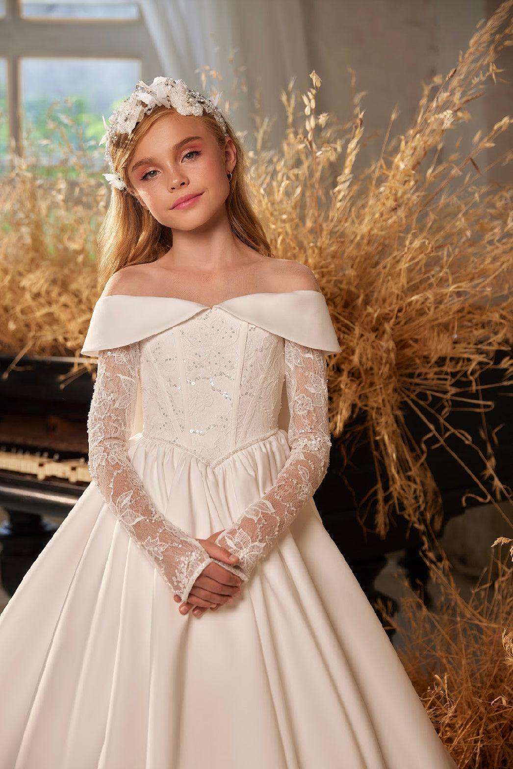 The Elora Gown is a harmonious blend of classic elegance and modern innovations, making it a perfect choice for those looking to make an unforgettable impression. Whether it's a First Communion, wedding, or any special occasion, this dress promises to turn heads and capture hearts.