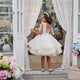 This beautiful girl's ruffle dress blends elegance and princess charm. The dress's white hue showcases its delicate beauty.