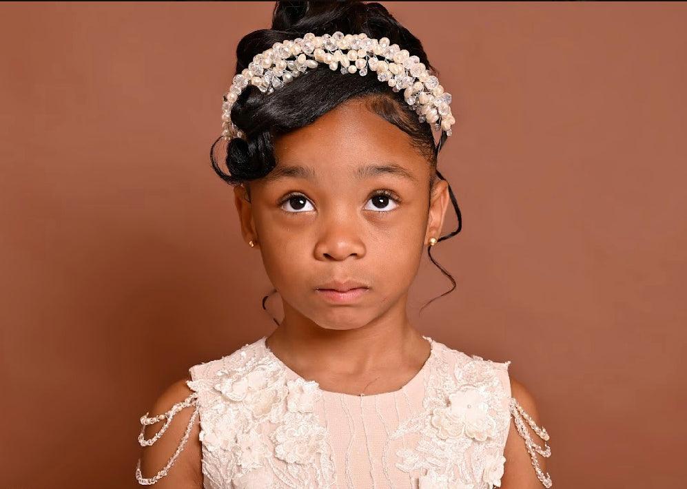 Transform your little one into a true princess with our Elegant Pearl and Crystal Floral Headband. This exquisite accessory features a delicate arrangement of shimmering pearls and sparkling crystals, intricately woven into a stunning floral design. Perfect for weddings, special occasions, or any event where she needs to shine, this headband adds a touch of sophistication and elegance to any outfit.