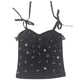 Sweetheart neckline with ruffles along the front and back with our signature tie straps for ultimate vacay vibes. Star and sequin beading is beautifully done by hand along the front with a mesh layer on top to protect.