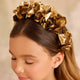Dramatic and radiant, the Aurelia Crown is crafted from clusters of metallic golden petals that create a striking halo effect. Designed to sit gracefully atop the head like a regal crown, it transforms any look into a statement of power and beauty.