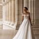 Pair this gown with crystal chandelier earrings, a sleek chignon or soft Hollywood waves, and a cathedral-length veil for a look that radiates regal sophistication. Perfect for grand ballrooms, elegant estate weddings, or romantic garden ceremonies.