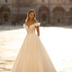 Style Inspiration: Pair this gown with pearl drop earrings, flowing Hollywood waves, and a cathedral-length veil for a breathtaking look. Perfect for sunset ceremonies, royal-inspired celebrations, or a grand ballroom affair under sparkling chandeliers.