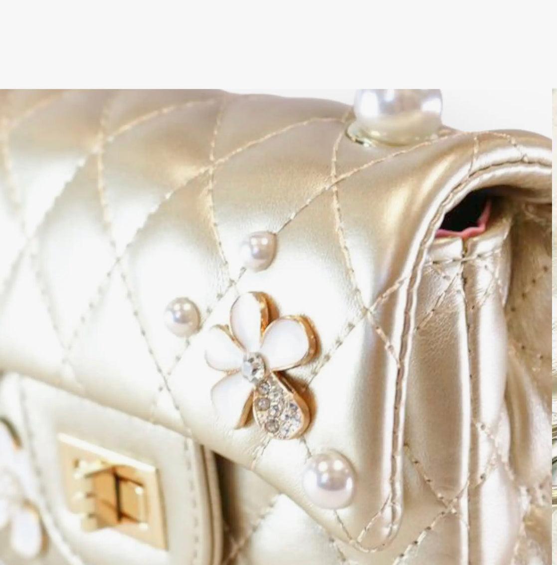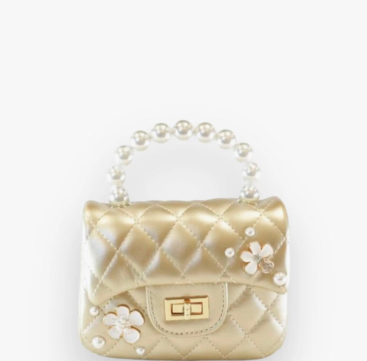 Gold Pearl Handle Quilted Purse