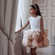 A fancy tutu dress for birthdays, parties, graduation, or weddings has a mid-length. Designed for twirling and dancing, this dress features an embellished sleeveless bodice, joined with a tiered flounce skirt in contrasting tulle. It's a fabulous girl's tutu dress that your kid will adore. The pretty skirt is so soft and fluffy; she can't stand to wear it right away to her party!