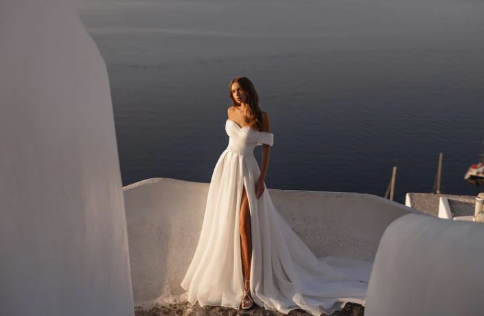 Style Inspiration: Pair this gown with crystal chandelier earrings, soft Hollywood waves, and satin heels for a look that radiates modern luxury. Ideal for romantic seaside vows, cliffside elopements, or chic garden ceremonies.