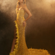 Radiating pure molten glamour, the Aurelia Flame Gown is a show-stopping masterpiece designed for the woman who refuses to blend in. This striking silhouette is drenched in hand-placed golden crystals that shimmer with every movement, sculpting the body in a luminous hourglass glow. A daring thigh-high slit is framed with a cascading line of soft, golden feathers, creating a dramatic sweep of texture that trails effortlessly into a feathered chapel-length train.