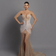 The Celestine Champagne Gown radiates red-carpet brilliance with its sculpted silhouette and masterful beadwork. The strapless, deeply contoured neckline elongates the figure while drawing the eye to the gown’s lavish pearl-encrusted bodice. Each bead is individually applied to create a dimensional, sculpted effect that glimmers against the skin.
