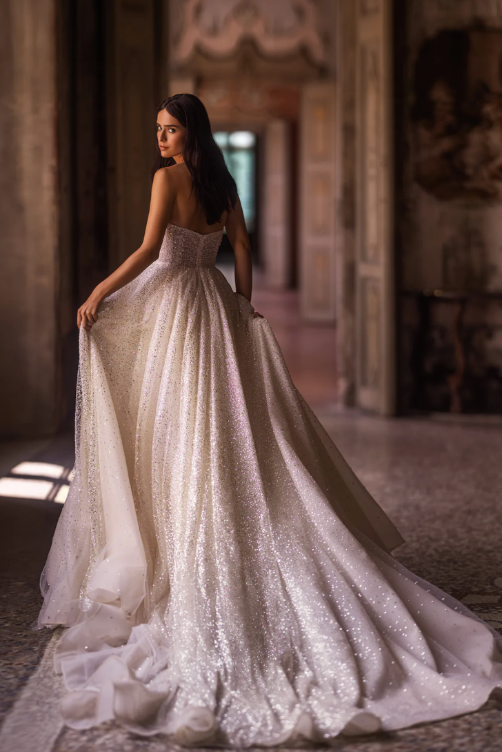 Style Inspiration: Pair this gown with an elegant pearl choker, softly curled hair swept gently over one shoulder, and crystal-embellished heels for a look that radiates timeless romance. Perfect for opulent garden weddings, grand estate ceremonies, or fairytale-inspired celebrations.