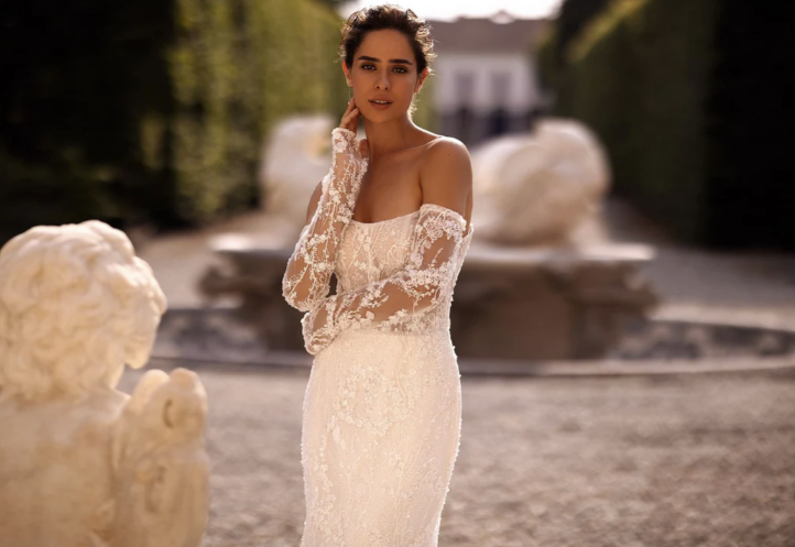 Style Inspiration: Pair this gown with a sleek low chignon, pearl drop earrings, and soft rose-toned makeup for a look that’s both angelic and majestic. Perfect for garden weddings, European-style venues, or candlelit cathedral ceremonies.