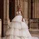 Delicate spaghetti straps add a touch of grace, while the fitted corset subtly cinches the waist, sculpting an ultra-flattering shape before blooming into a dramatic full skirt. Each tier is perfectly gathered to create effortless volume and depth, making every twirl unforgettable.