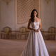 Pair this gown with drop crystal earrings, soft waves or a romantic updo, and a cathedral-length veil for a look that’s both enchanting and timeless. Perfect for garden weddings, castle ceremonies, or candlelit receptions.