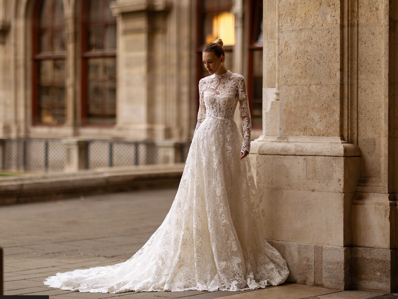 Every element of this gown exudes refinement — from the sculpted corset bodice to the elegantly trailing train, it is a true celebration of couture bridal artistry.