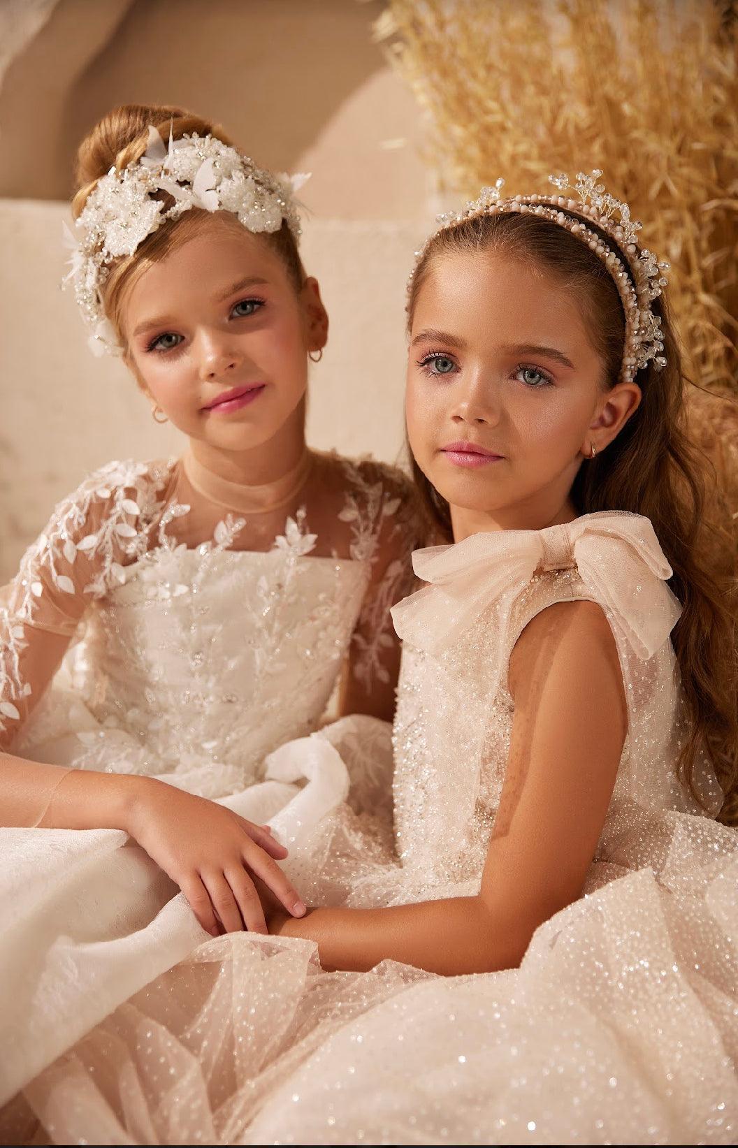 The Amity is a beautiful off-white gown designed for children to shine. Its classic styling makes it ideal for weddings, special religious occasions, or grand festivities.