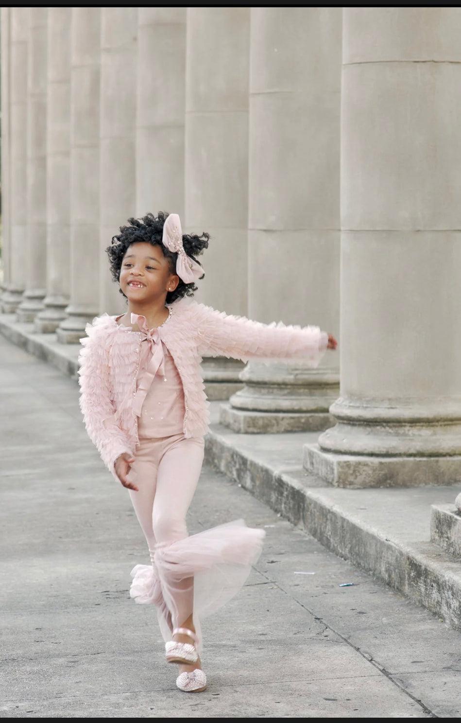 Your little fashionista will radiate elegance and charm in our Pretty in Pink Dream Ensemble. This chic 4-piece set includes: