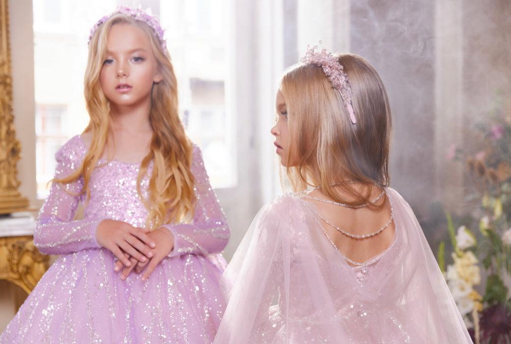 Your little princesses will shine in our stunning Twilight Sparkle Dress. These dreamy gowns are designed with a whimsical touch of shimmering sequins, making them perfect for any special occasion. Featuring long sleeves and a cape-style back, each gown adds a magical flair to the classic design.