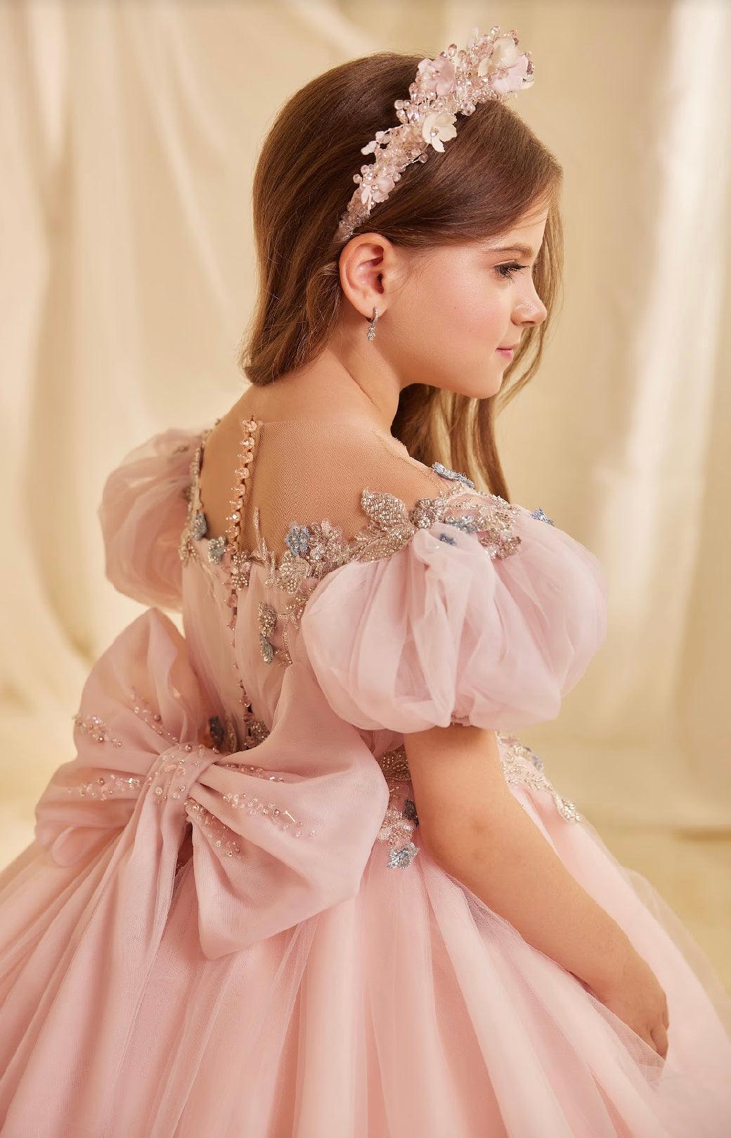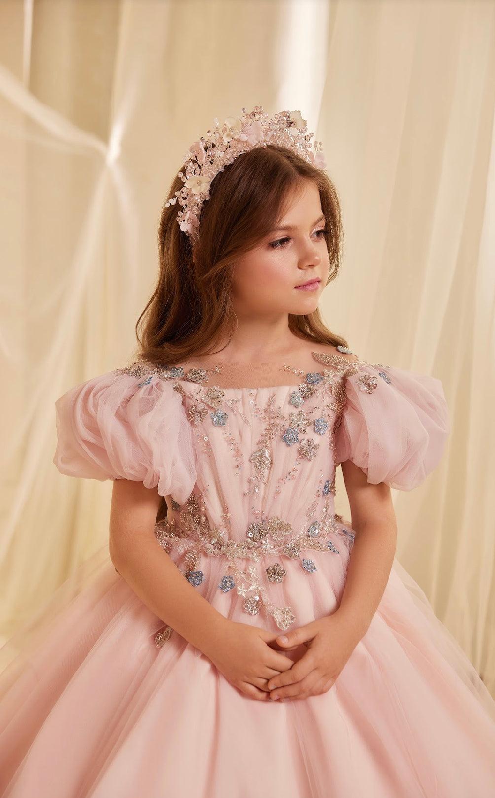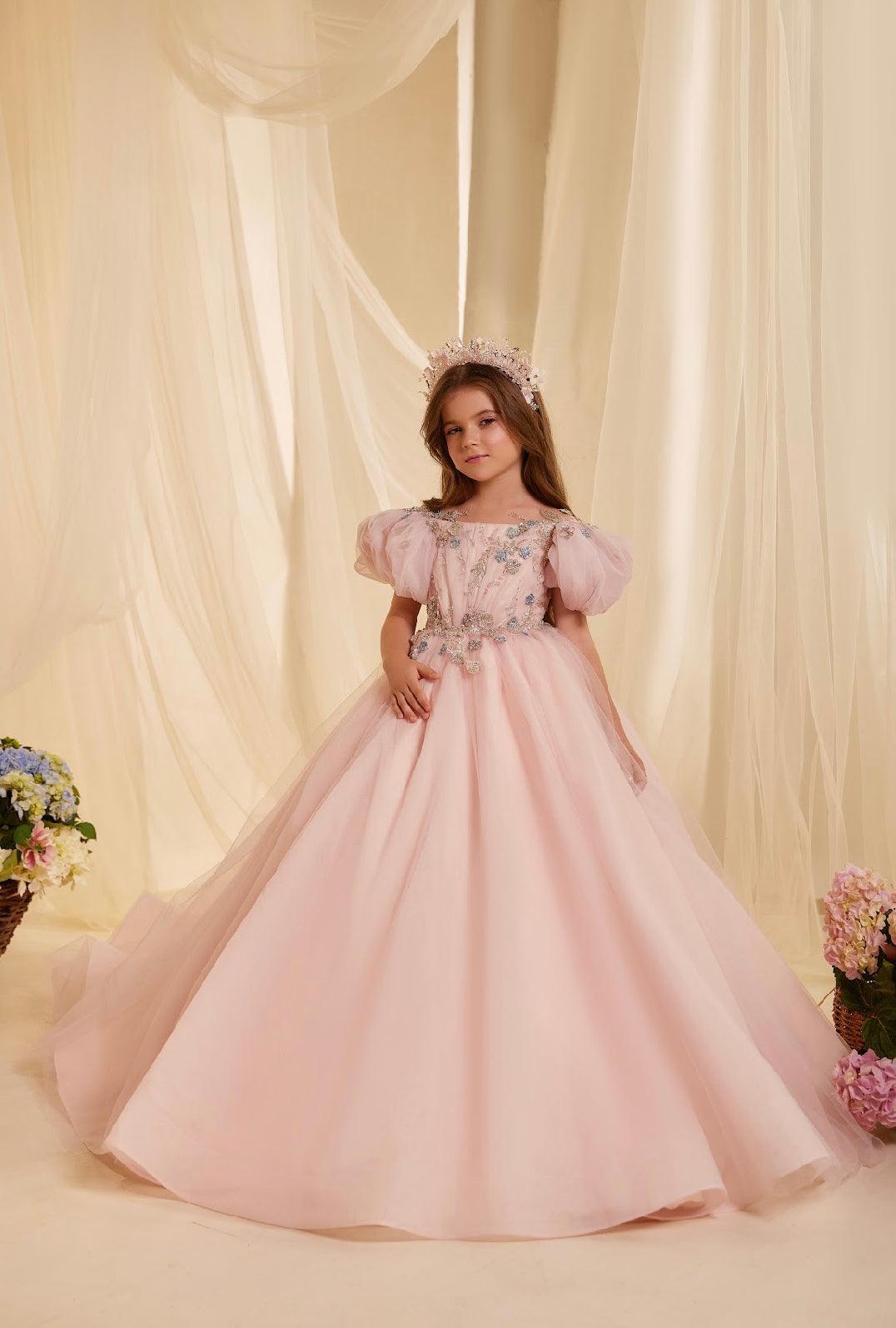Given the dress's intricate details and ethereal design, it's the ideal choice for special occasions such as weddings, particularly as a flower girl's attire, formal events, or any gathering where elegance with a touch of magic is desired.