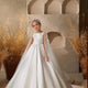 Elevate your little girl's special moments with this gorgeous two-piece outfit for flower girls. It consists of an exquisite satin ball gown paired with a magnificent embellished train. Designed in Europe, it reflects meticulous attention to detail for those memorable occasions. The radiant white hue accentuates its charm, making it a standout choice for any special event.