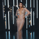 The Aurelia Radiance Gown is the embodiment of sculpted elegance—an opulent creation designed for the woman who commands the room with quiet, irresistible power. Cut from a sheer nude mesh and drenched in meticulously placed crystals, this gown captures light from every angle, creating an illuminated, liquid-gold effect that glides across the body.
