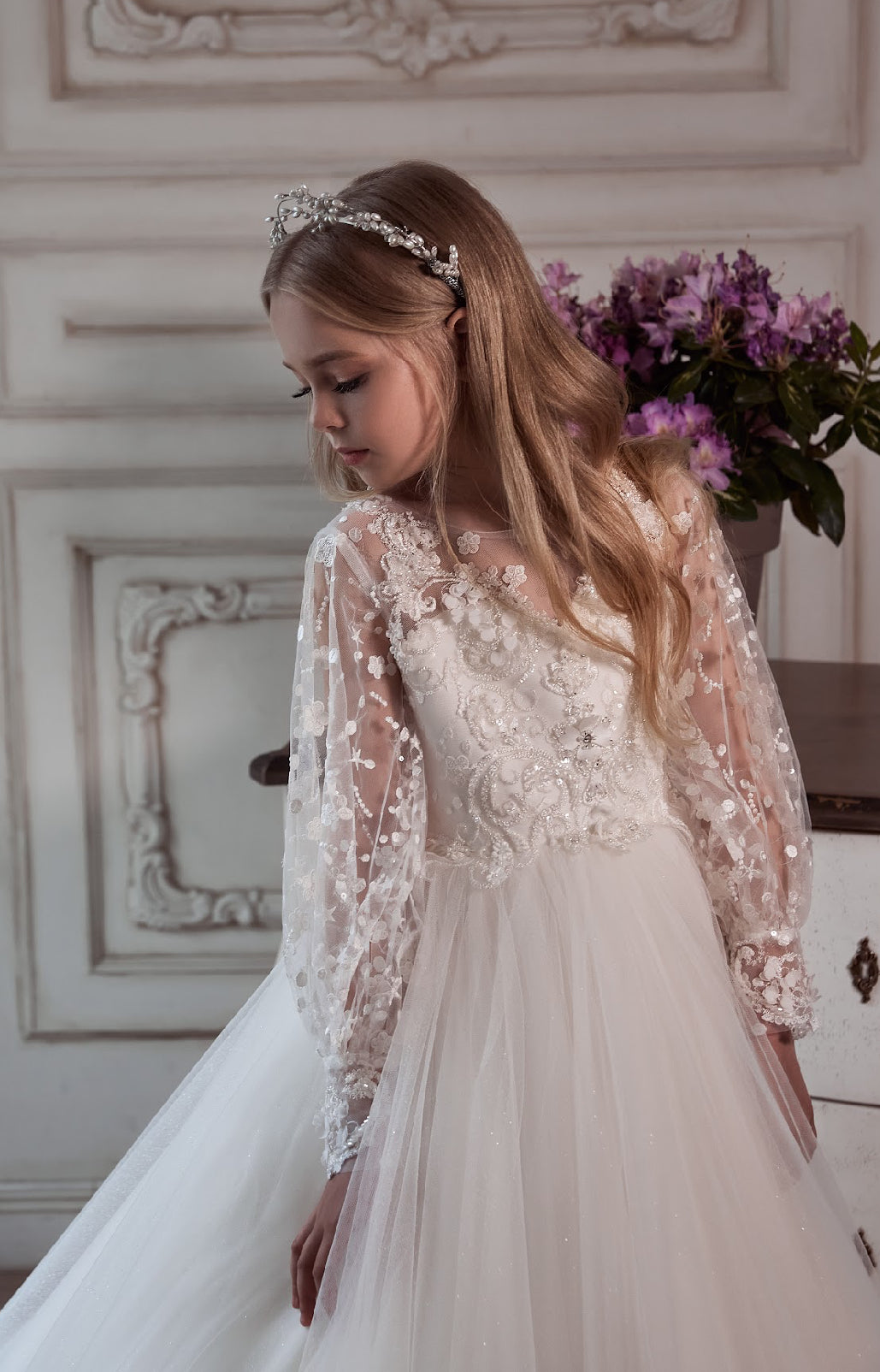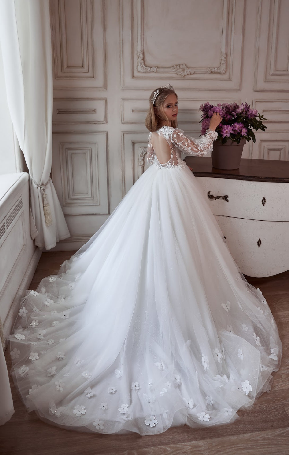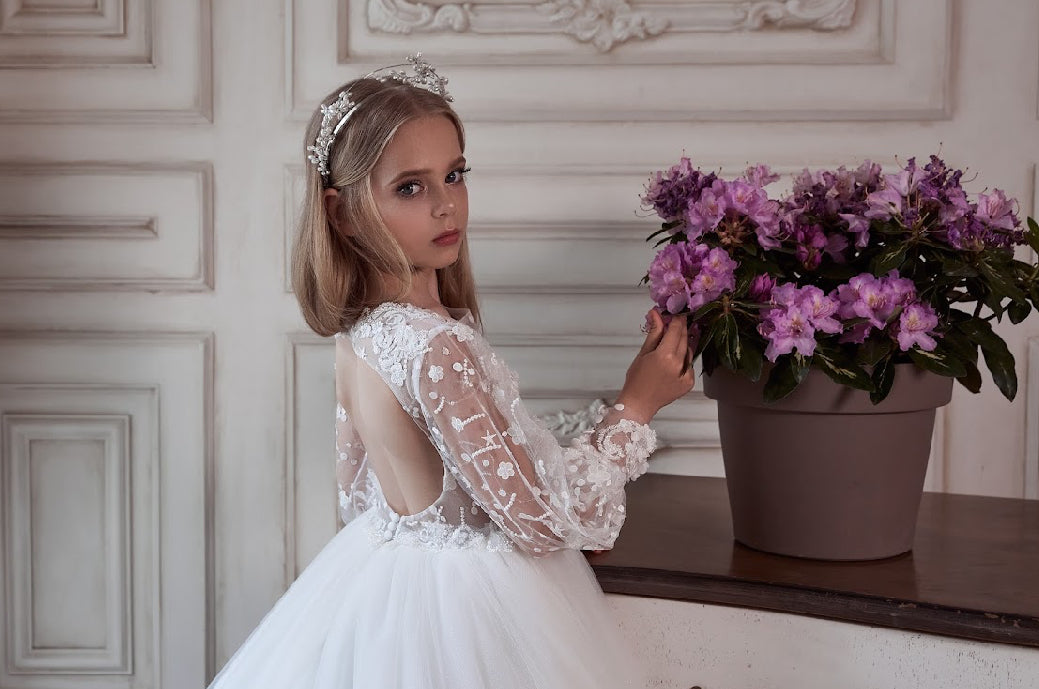 Immerse your little one in a world of grace and beauty with the Majestic Blossom Gown, designed for those unforgettable moments where elegance is a must. Perfect for flower girls, communions, or any grand event, this gown is a show-stopping piece in our luxury collection.