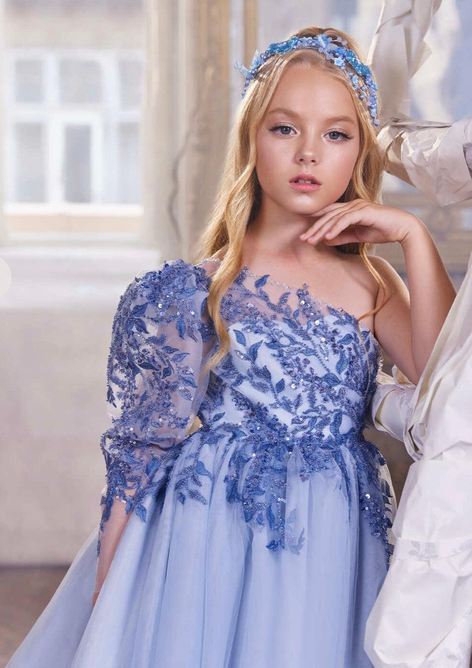 Step into a world of wonder with the Azure Blossom Enchantment Headband, a delicate and intricate piece that radiates charm and elegance. This stunning headband is adorned with intricate beadwork, featuring a vibrant central blue flower surrounded by cascading floral accents in soft blue hues. The shimmering crystals and delicate butterfly detail add a magical touch, making it a perfect accessory for special occasions such as weddings, birthdays, or fairy-tale-themed events. The flexible and comfortable band ensures that your little one feels like royalty while wearing this enchanting headpiece.