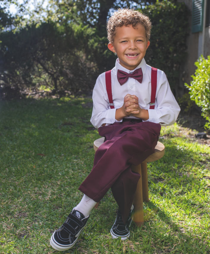 Pair with classic loafers or dressy sneakers for a look that stands out in every photo. Ideal for fall and winter events, this deep burgundy shade adds warmth and richness to any celebration.