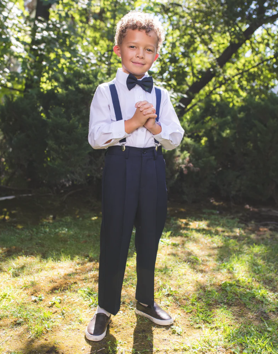 Designed for dapper little gentlemen, the Barn Wedding Set in Navy is a timeless formal ensemble that blends classic elegance with effortless wearability. Whether he's walking down the aisle, attending a family celebration, or posing for a special portrait, this tailored set ensures he looks picture-perfect from every angle.
