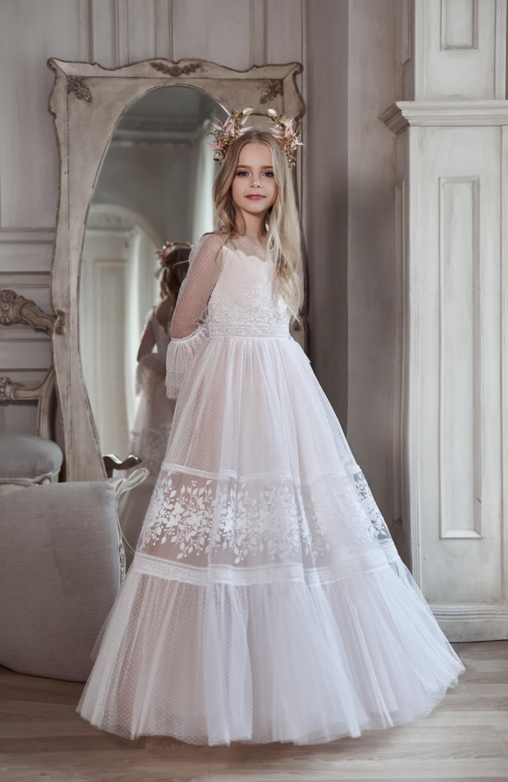 Light as air yet rich in texture, Arabella is the gown for little princesses who move through the world with quiet confidence and luminous charm.