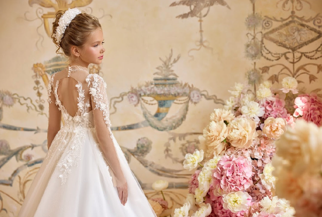 Ideal for communions, weddings, and grand celebrations, the Aurelia Gown blends tradition with ethereal charm — a keepsake to be remembered forever.
