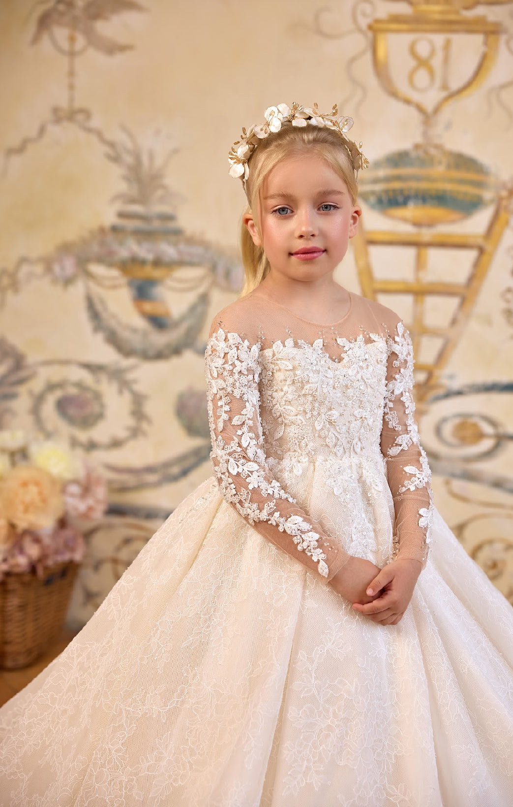 Perfect for communions, weddings, portraits, or grand celebrations, the Isolde Gown captures the spirit of sophistication and grace — a gown to be remembered for generations