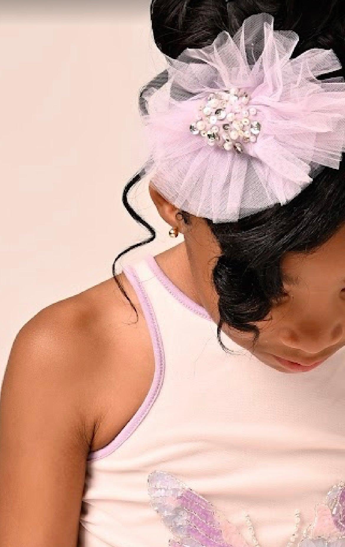 Complete your little one’s look with our Lavender Tulle Bow Headband, a charming accessory that adds a touch of elegance and whimsy to any outfit. This headband features a soft, lavender-colored tulle bow adorned with delicate pearl accents, creating a look that’s both sweet and sophisticated.