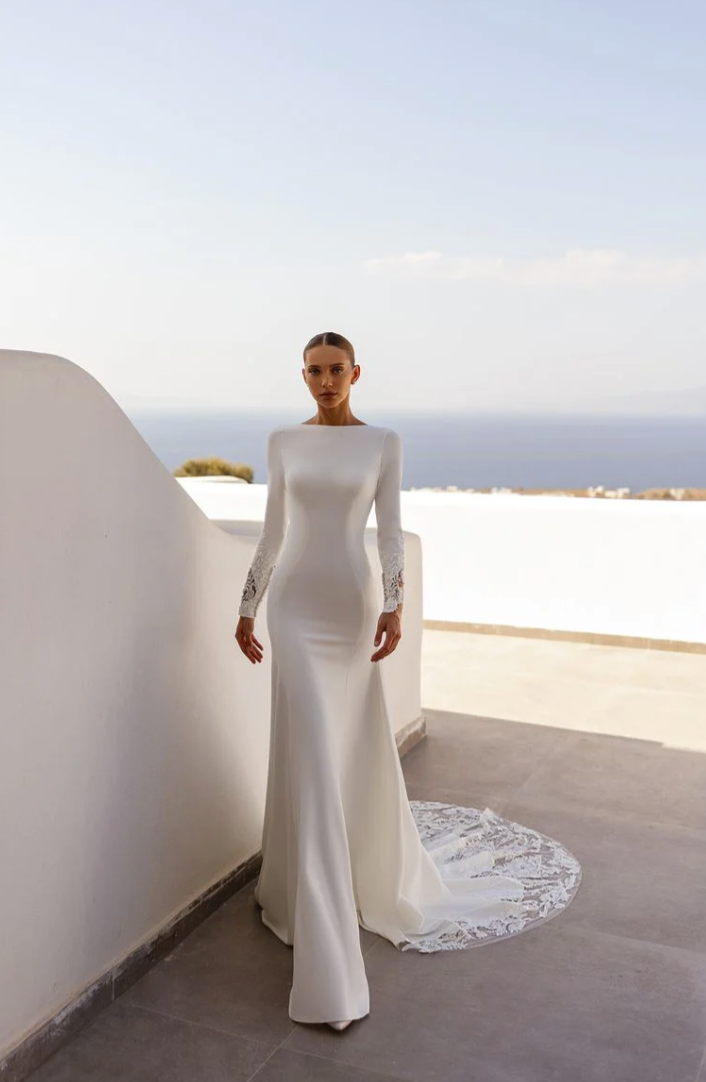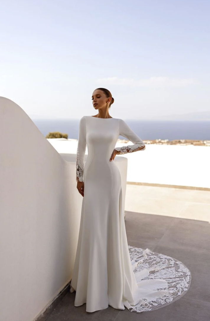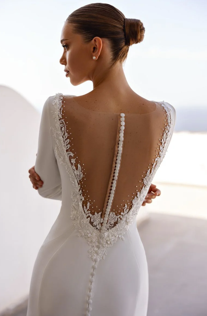 Style Inspiration: Pair this gown with crystal drop earrings, a soft wavy hairstyle, and strappy heels for a look that radiates ethereal luxury. Perfect for coastal ceremonies, mountaintop elopements, or romantic destination weddings.
