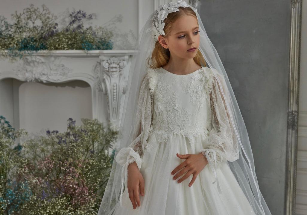 This Ethereal Floral Veil Headpiece is the perfect blend of timeless elegance and modern sophistication. Designed to complement any formal gown, this headpiece features delicate floral appliqués woven into a soft lace headband, seamlessly flowing into a dreamy, cascading veil. Ideal for weddings, first communions, or any other special occasion where grace and poise are paramount, this piece ensures your little one will look and feel like royalty. The intricate detailing and luxurious fabrics make it a must-have accessory for creating unforgettable memories.